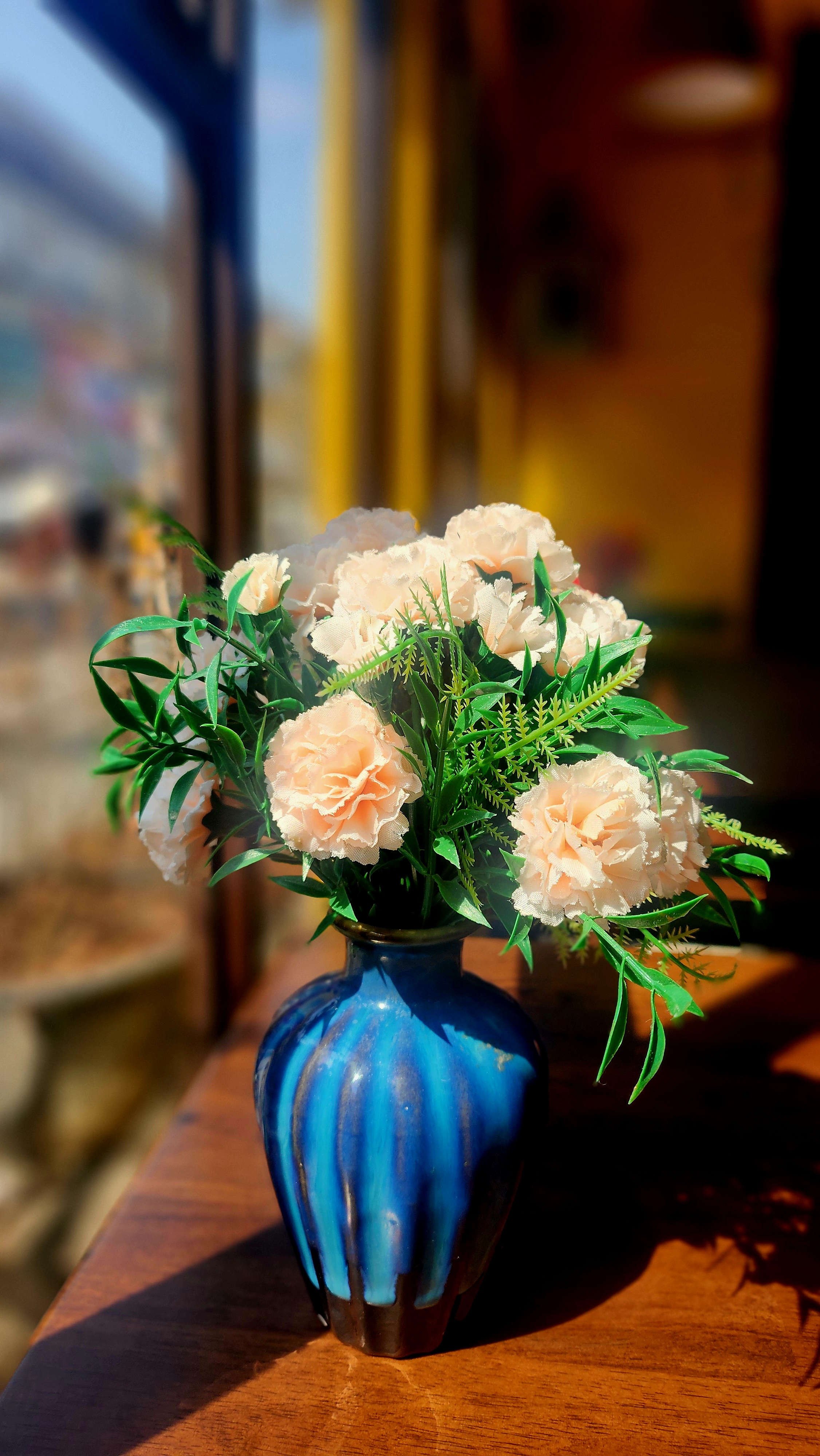 따뜻한 커피를 기다리다가 마주한 꽃.