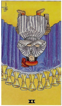 먼저 새로운 사업단에 지원서를 넣었을 때를 생각해서 나온 카드가 컵9 (역방향).
