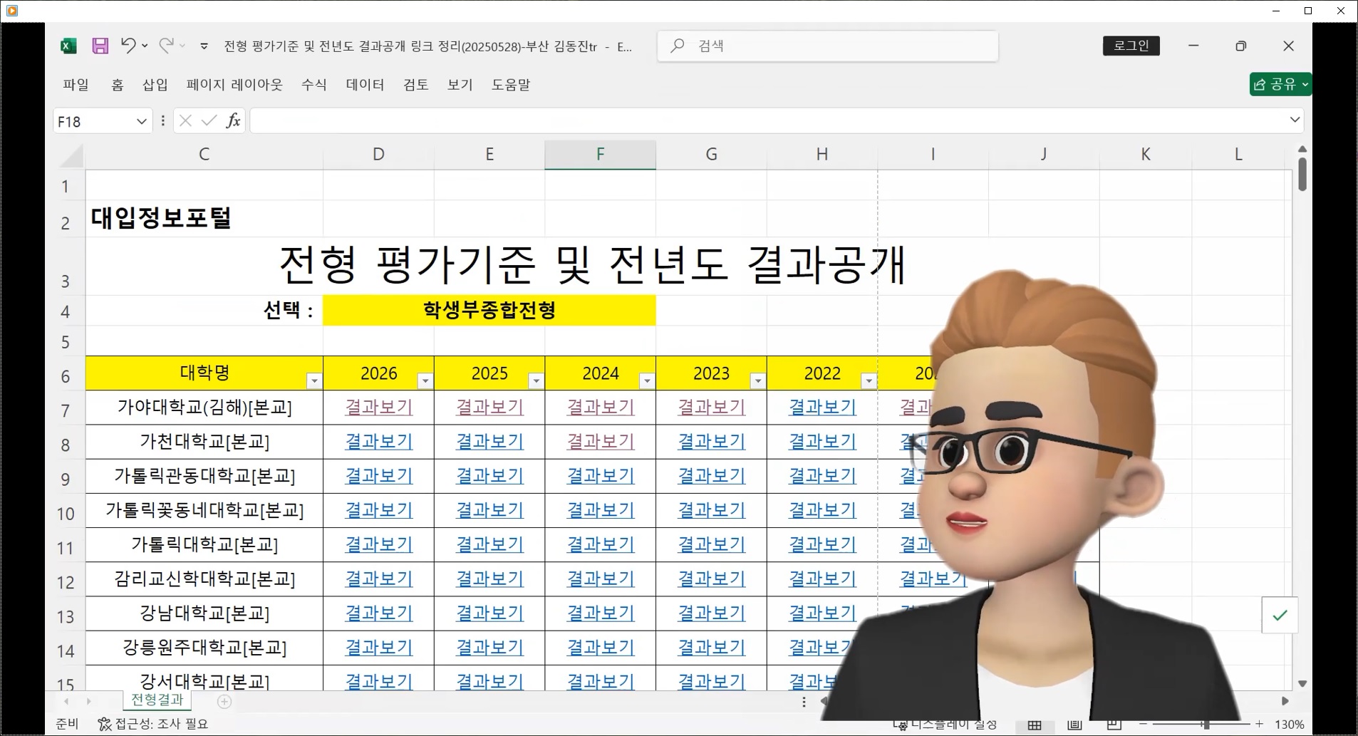 3년 이상의 대학별 입결 정보인데