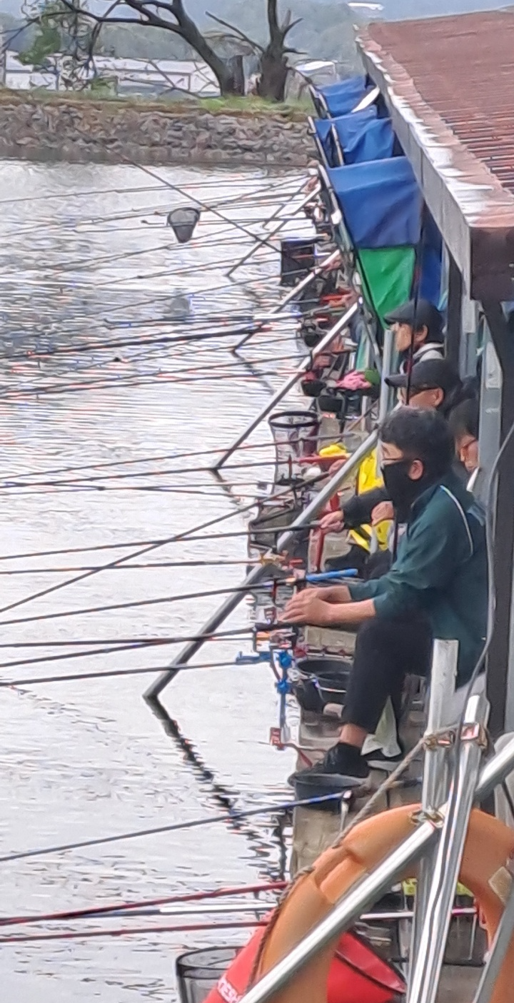 하지만 날씨가 심술이 났는지 점점 거센 비바람을 뿌려대기 시작했다. 정면에선 비바람이 들이치고 머리 위에선 물방울들이 떨어지고.... 어떻게든 버티며 입질을 보려고 노력했지만 점점 옷이 젖어가면서 멍해지기 시작. 간신히 입질을 봤지만 낚시줄이 반토막나버리며 채비만 날렸고 결국 남은 대 한 대 들고 반대편 빈 자리로 급히 피신했다.